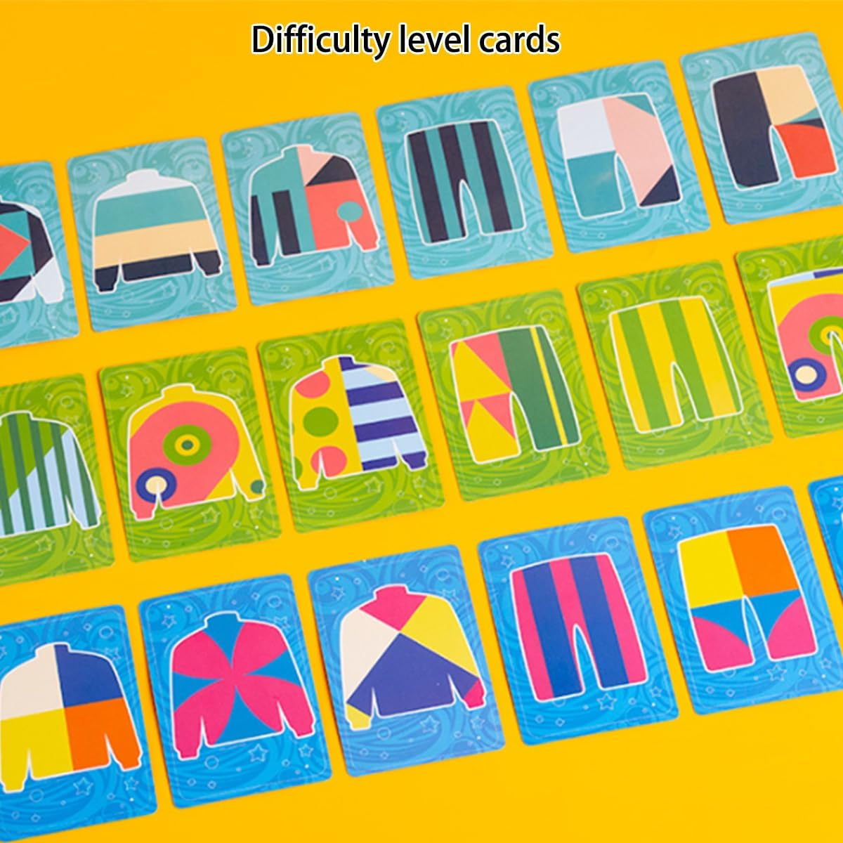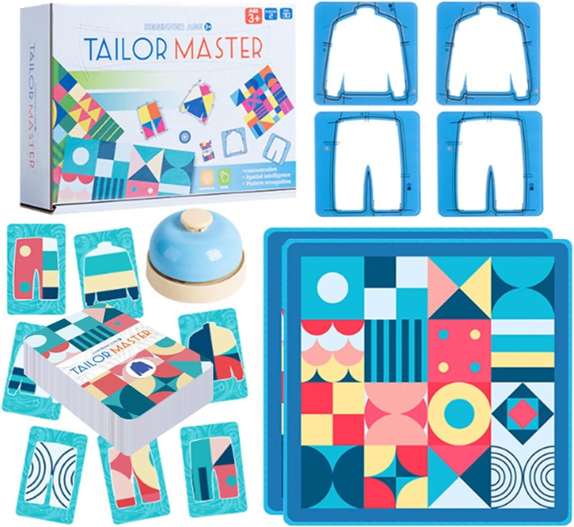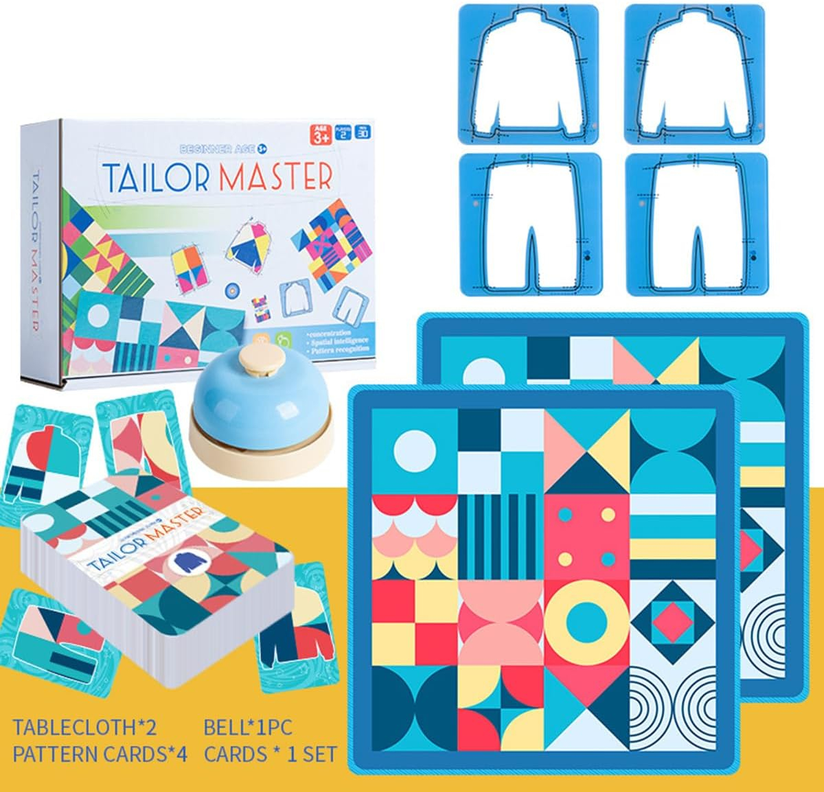 Fiecare jucator va primi cate o panza colorata si cate 2 placute tipar, una cu bluza, cealalta cu pantaloni. In mijlocul mesei se va aseza soneria si cardurile sablon intr-un teanc cu fata in jos. Se va intoarce pe rand cate un card. Jucatorii vor lua placuta transparenta cu bluza sau cu pantalonii in functie de cardul sablon si o va aseza pe panza sa, in locul corespunzator astfel incat sa creeze pe obiectul vestimentar exact modelul sugerat in cardul sablon. Jucatorul care va gasi primul locul exact de pe panza si isi va aseza piesa transparenta, va putea atinge soneria si va fi castigatorul rundei, atribuindu-si un punct.