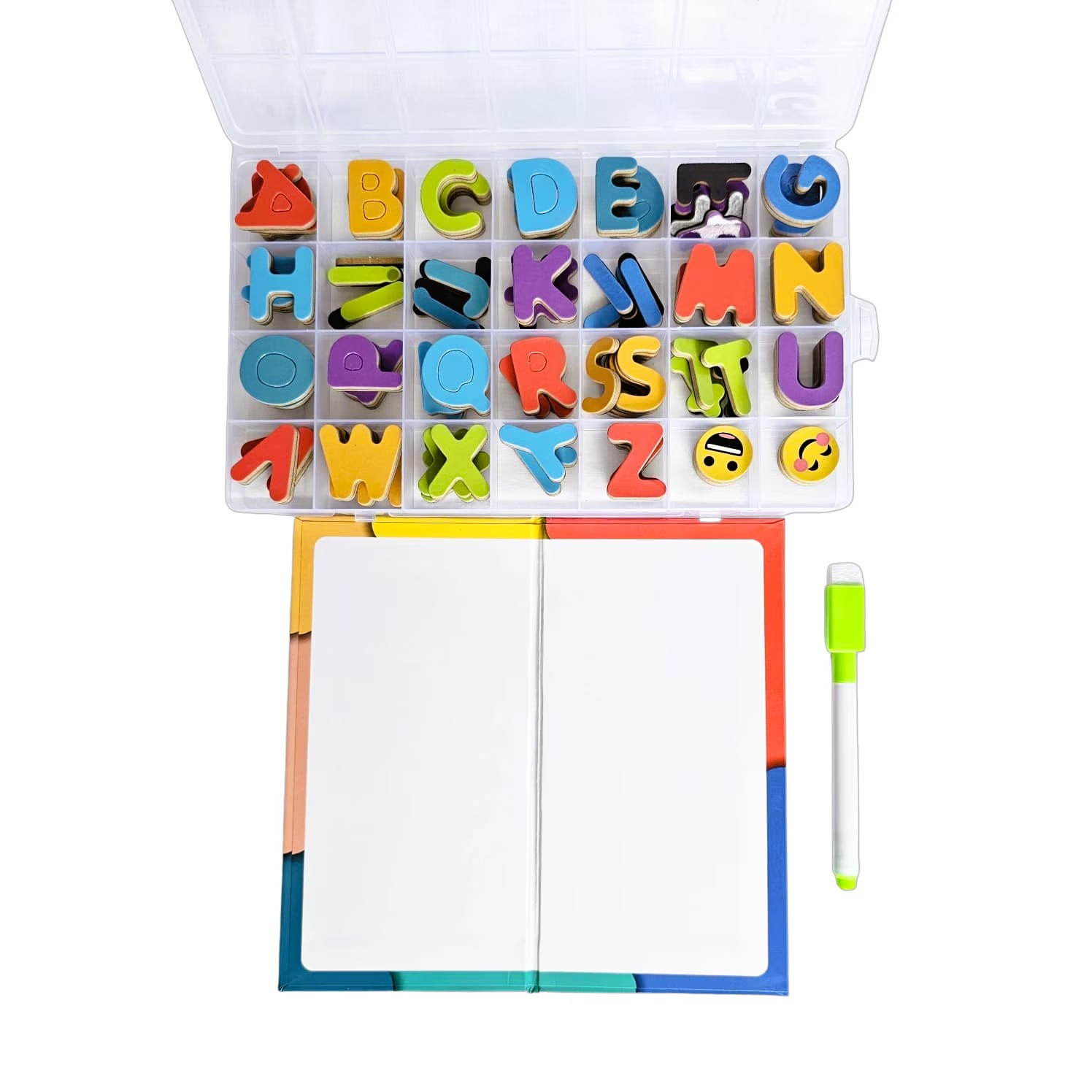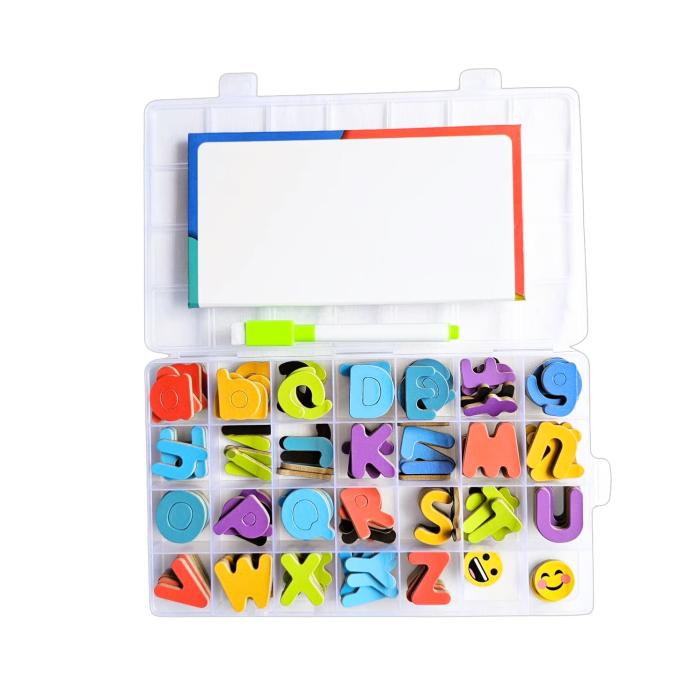 Invata literelele si lipeste-le pe tablita din set sau pe orice alta suprafata metalica.