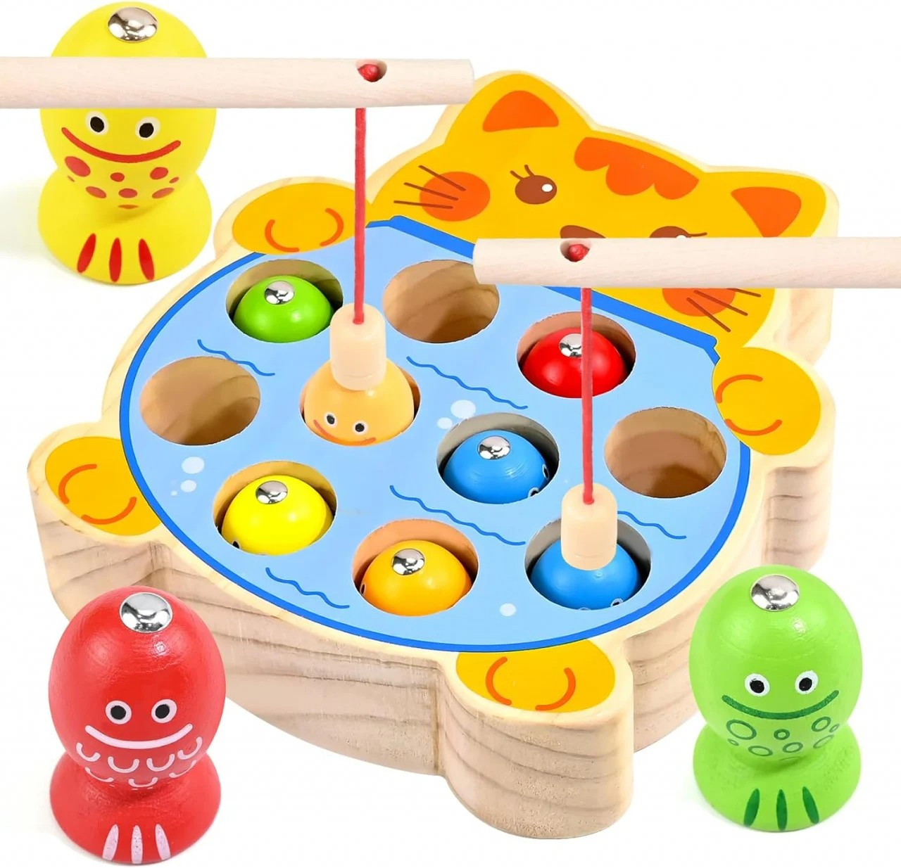 Joc de pescuit magnetic pisicuta din lemn Magnetic Cat Fishing Game