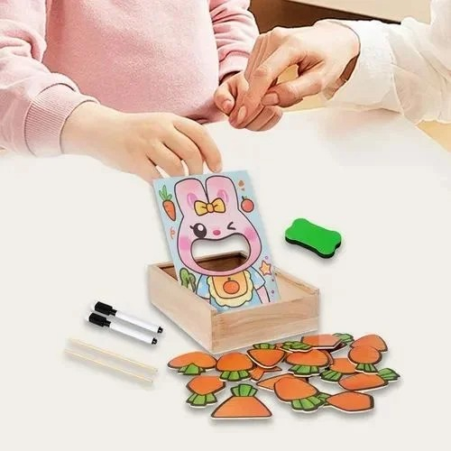 • cutie din lemn pentru depozitarea pieselor, utilizata si ca suport pentru placuta cu animalul ce va fi hranit