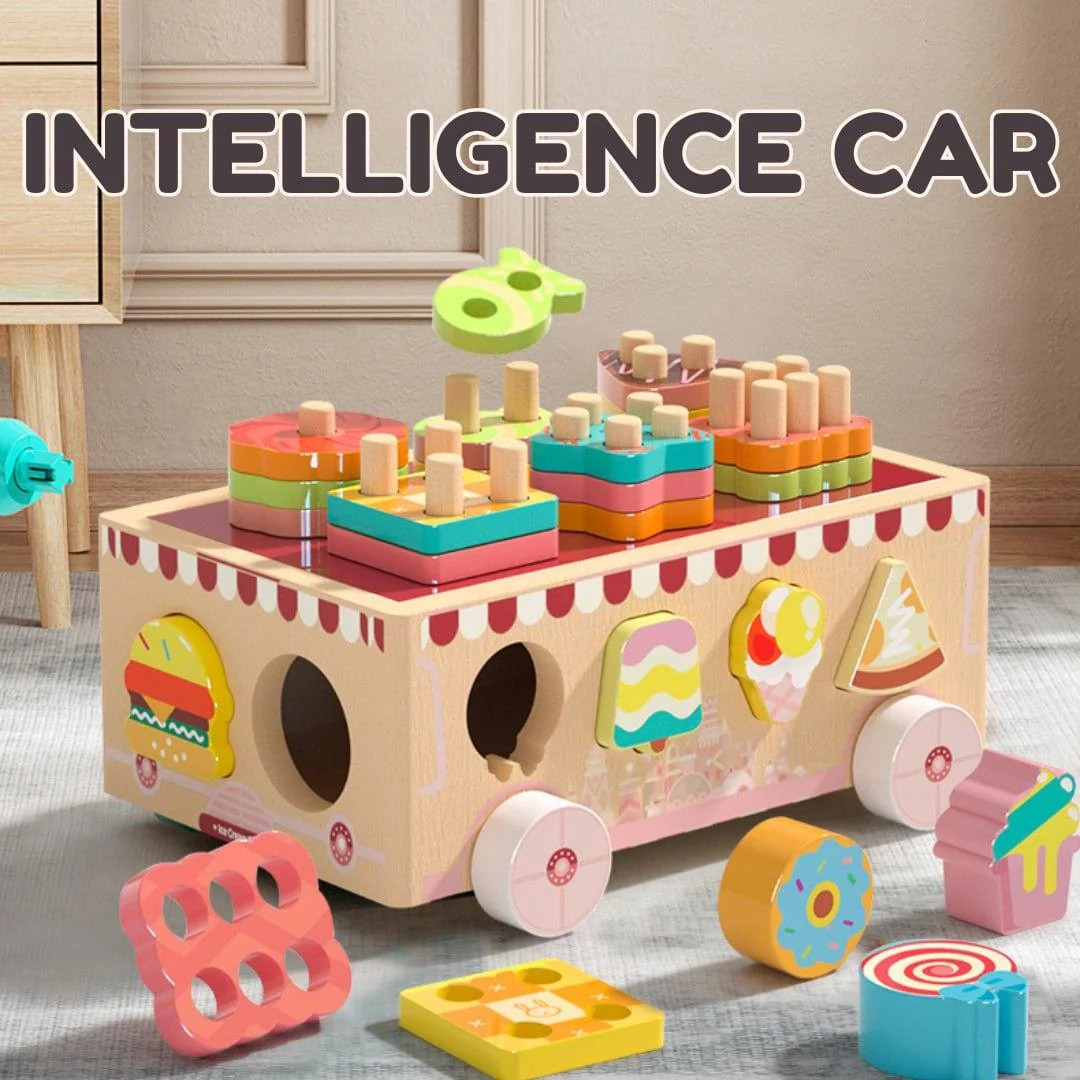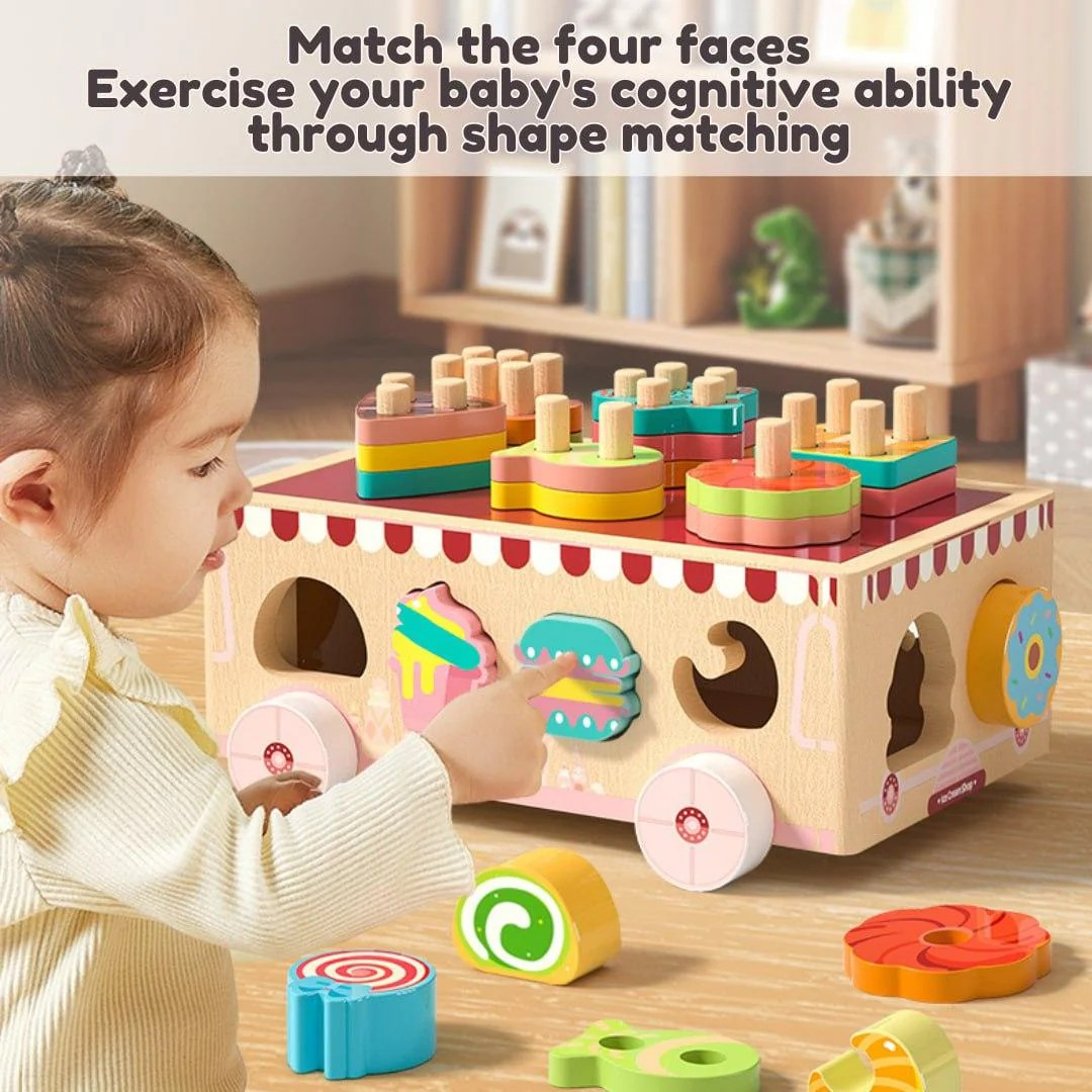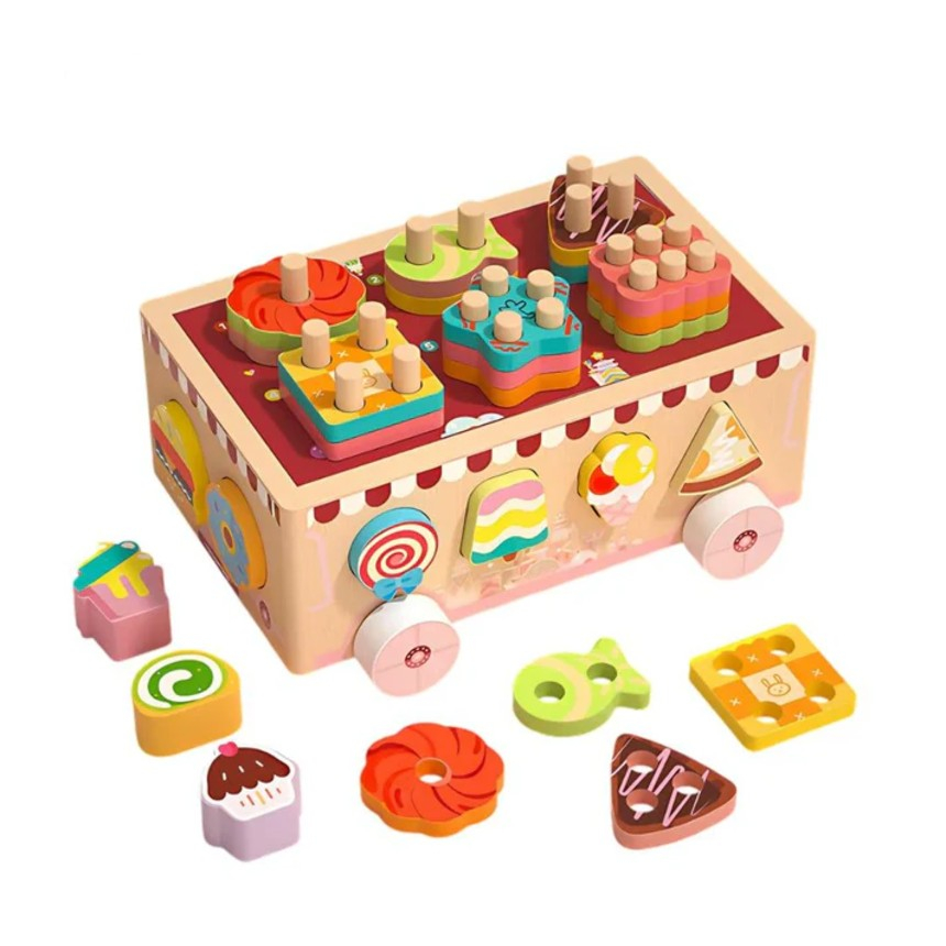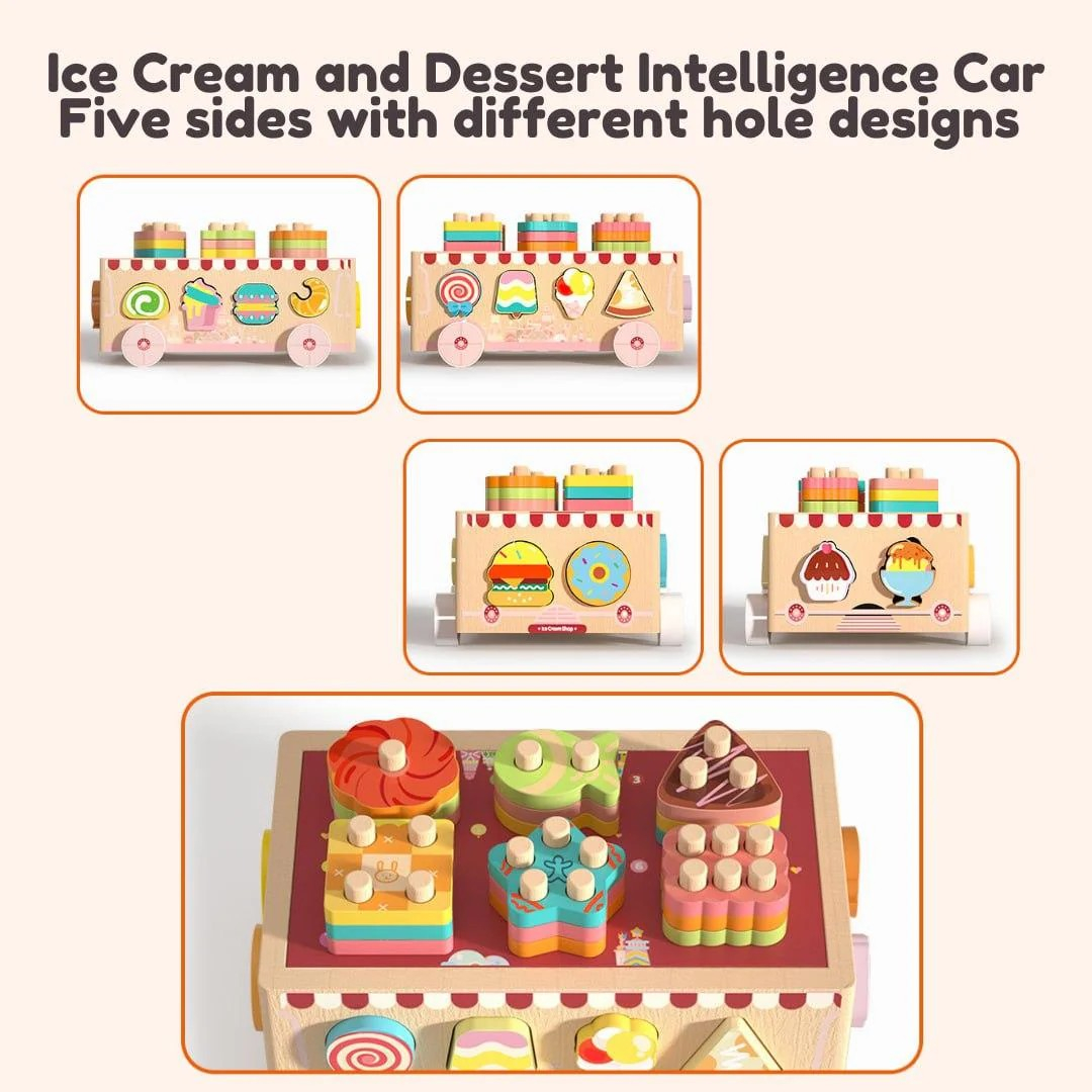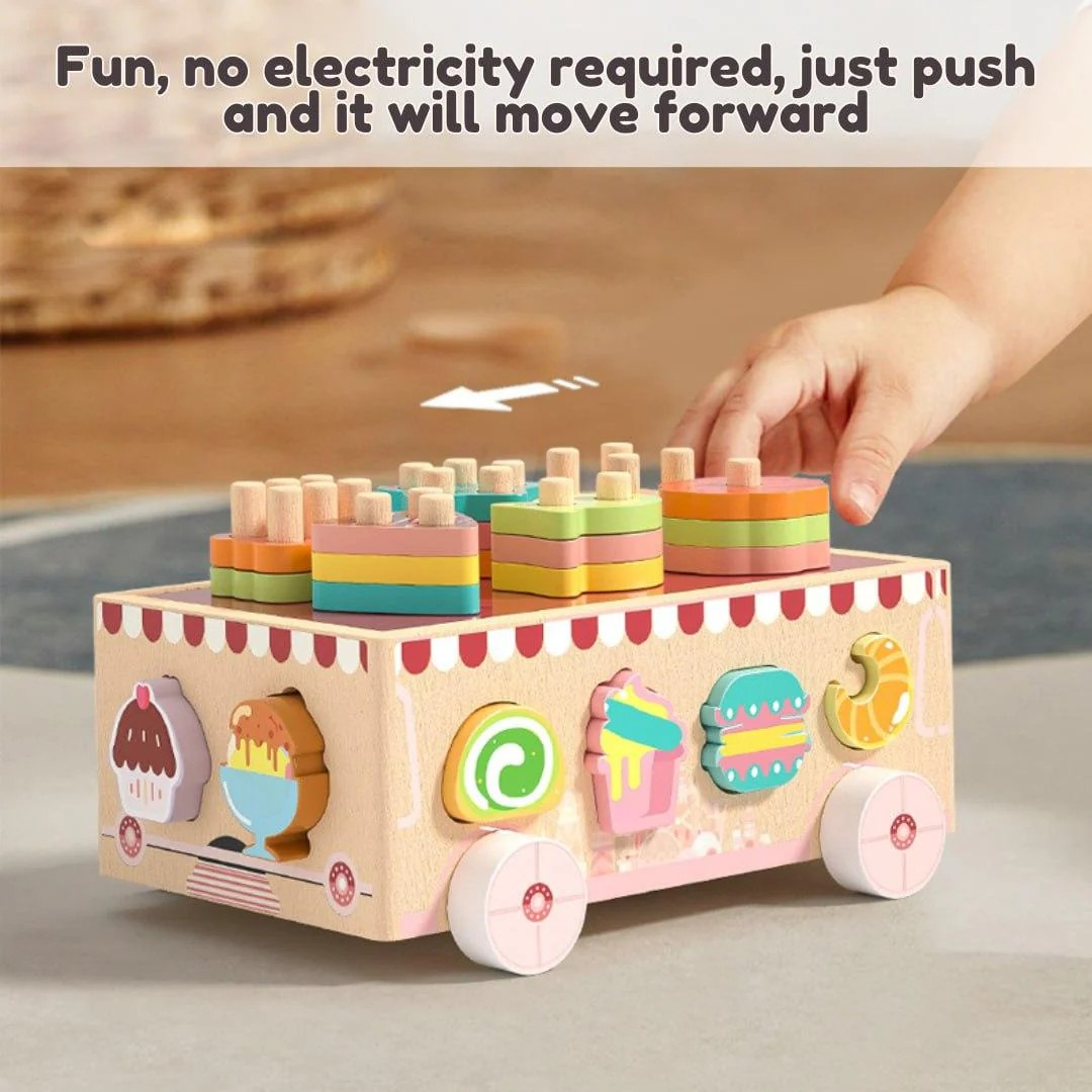 Joc Montessori din lemn de motricitate si indemanare Remorca cu deserturi si inghetata